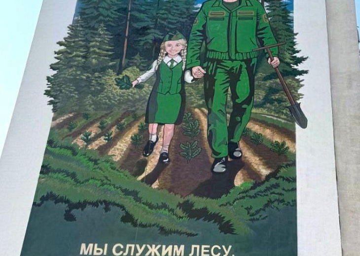Тематическое изображение на лесохозяйственную тематику украсило 10 этажный жилой дом, расположенный по адресу: улица Тельмана, 19.