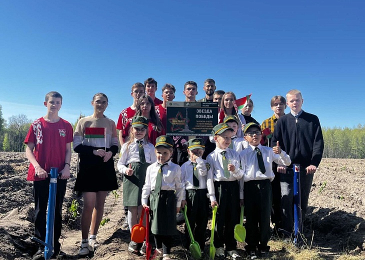 В Юркевичском лесничестве Житковичского лесхоза высадили символический живой знак к 80-летию Победы