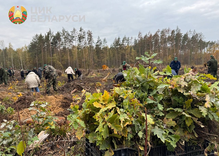 На делянке в 1,2 гектара Макеевского опытно-производственного лесничества, где летом образовался бурелом после непогоды, коллектив ЦИК Беларуси высадил более 15 тысяч саженцев дуба и березы.