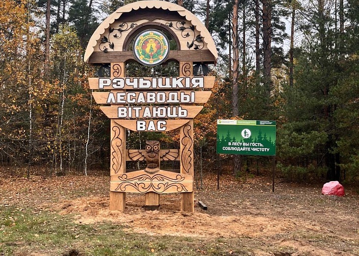 На трассе М10 Гомель-Кобрин установлен новый арт-объект «РЭЧЫЦКІЯ ЛЕСАВОДЫ ВІТАЮЦЬ ВАС!» чтобы каждый, кто въезжает в наши леса, почувствовал нашу любовь к природе.